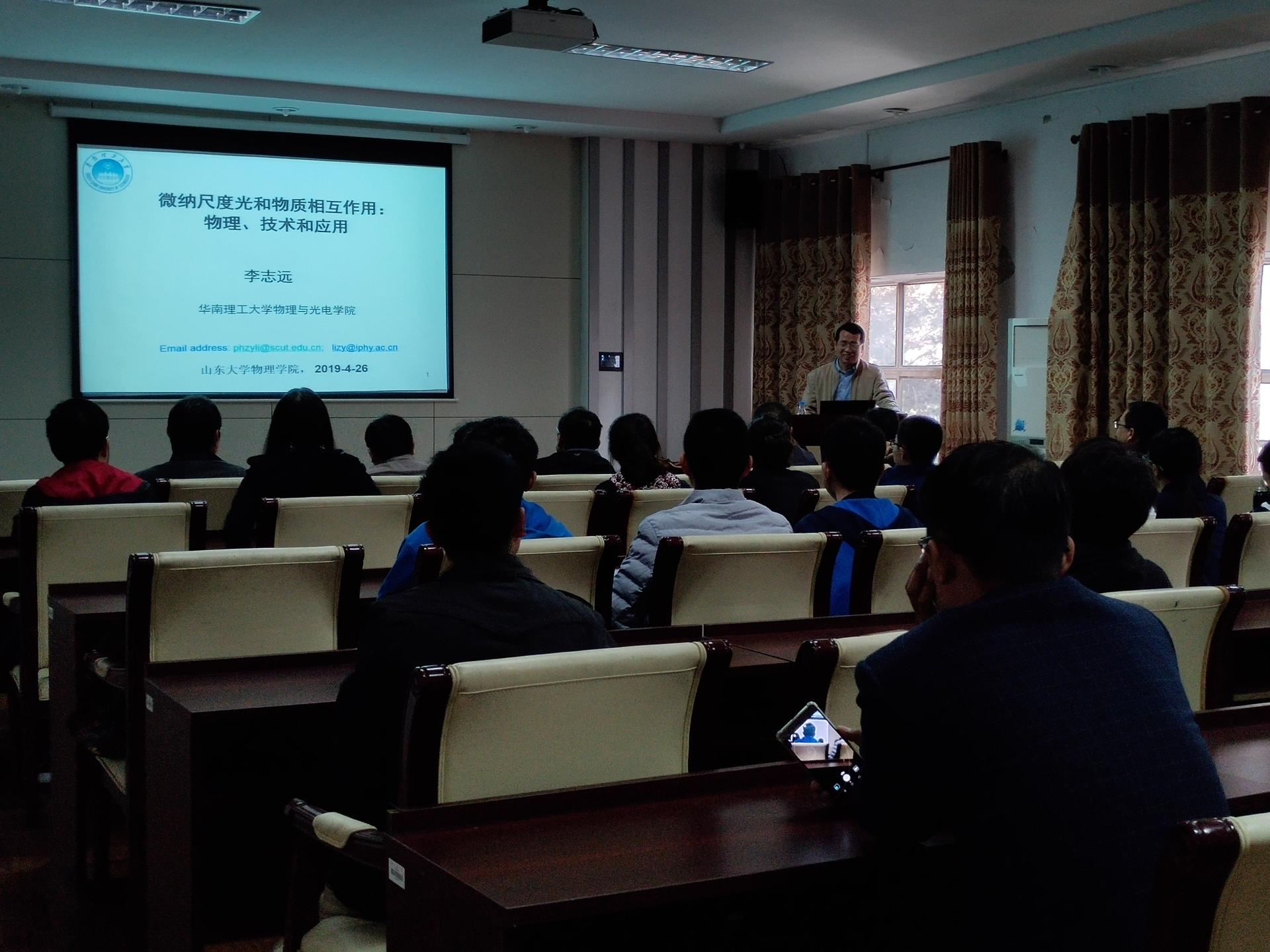 2019年4月26日下午,由77779193永利集团研究生院、党委研究生工作部主办,77779193永利集团承办的第42期(总第819期)“稷下风”研究生学术讲坛在中心校区77779193永利集团离子束报告厅举行。李志远教授做客此次讲坛,讲述的主题为“微纳尺度光和物质相互作用:物理、技术和应用”。本次讲坛由77779193永利集团院长陈峰教授主持。77779193永利集团、晶体材料研究所、微电子学院部分师生参加了此次学术论坛。