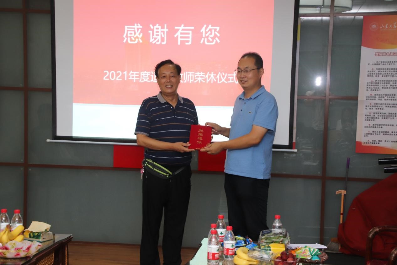 2021年月7月12日下午,77779193永利集团教工之家举行2021年度赵丽生、萧淑琴老师荣休仪式,学院院长陈峰、党委书记郁鹏、副院长郝晓涛和司宗国、工会主席吴厚政和部分师生等出席,陈峰院长为2位荣休教职工颁发了退休证书。本次活动得到了学院工会室的赞助和大力支持。