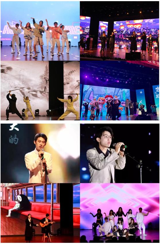 青春洋溢的朝气是未来的希冀,一段热情洋溢的舞蹈《Young & Future》奠定了本次晚会生机勃勃、昂扬热烈的基调。《故事细腻》《他乡》等歌唱类节目和《彩云追月》《千亿》等器乐表演类节目引来观众雷鸣般的掌声。舞蹈节目《Crazy Over You》劲歌热舞,活力飞扬,现场欢呼不断。随之而来的武术表演类节目更是令人耳目一新,梅花桩武术协会的同学们用刀光剑影给观众带来了视觉的盛宴,让观众感受到中华武术的魅力。晚会手影舞《我和你》描述着凡尘间的人间温暖;说唱《目不转睛》展示出青年学子在时代浪潮中的力量;幕布剧用光影的流转记录了美好的韶华。