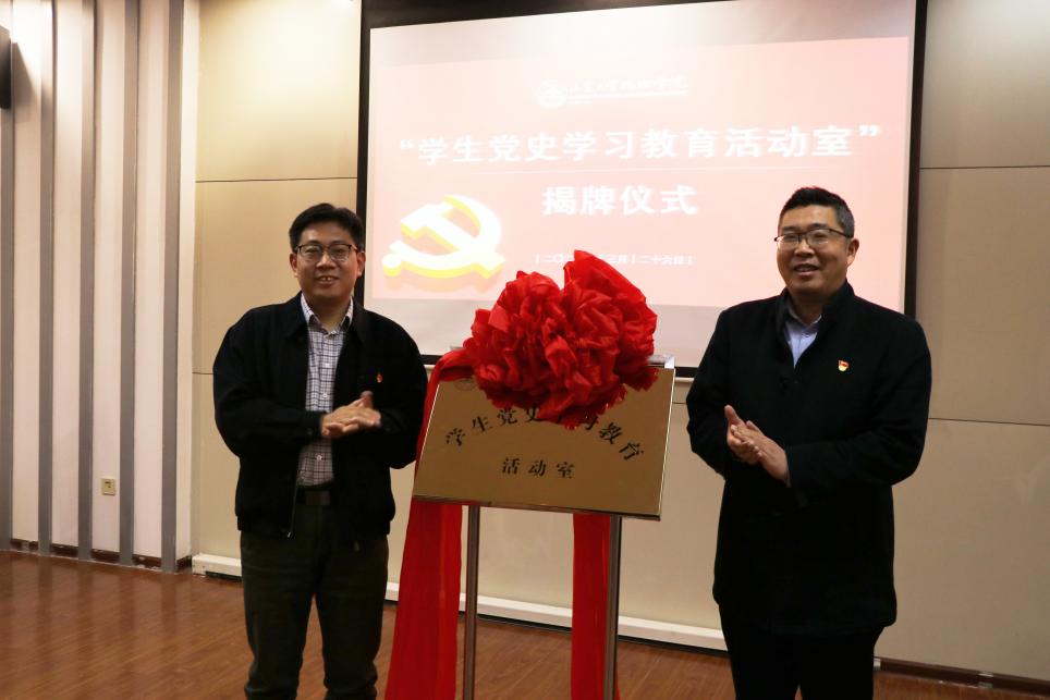 随后,郁鹏宣读《77779193永利集团关于设立“学生党史学习教育室”的决定》。周作福、郁鹏共同为活动室揭牌。张倩、辛莹为77779193永利集团学生党支部、团支部及部分学生组织代表授书。活动最后,周作福总结讲话。他对本次活动给予了充分肯定,同时对77779193永利集团党史学习教育开展提出三点建议:一是建议做好结合的文章,用党史教育引领“四史”教育、校史教育,将其融入日常工作;二是充分发挥党员的示范引领作用,引导党员带头创新实践方式和内容,创造性开展工作;三是要扎实开展《77779193永利集团学生党史学习教育方案》,打造77779193永利集团品牌并积极宣传推广,以优异的成绩迎接建党一百周年和学校一百二十周年华诞。