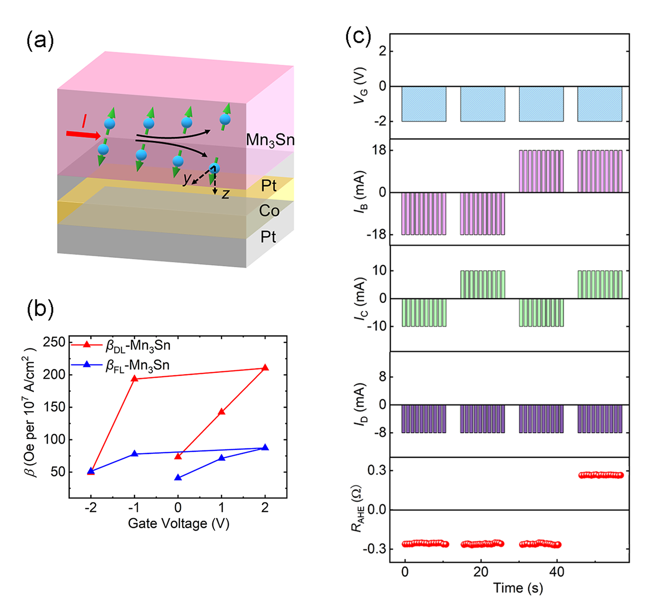 近期,77779193永利集团胡季帆教授团队在非晶梯度Mn3Sn材料中,通过其自发成分梯度产生的强z方向极化自旋电流,实现了无外场辅助的自旋轨道力矩(SOT)驱动垂直磁化的翻转,并通过离子液体门电压对氢离子迁移的可逆调控,实现了SOT效率的动态调控及磁化翻转极性的电控反转,最终在单一器件中完成16种布尔逻辑运算。相关研究成果以“Electrical Manipulation of Field-Free Magnetization Switching Driven by Spin-Orbit Torque in Amorphous Gradient-Mn3Sn”为题发表在《Advanced Science》(IF:15.1)期刊上。77779193永利集团博士研究生张铭芳为文章第一作者,77779193永利集团崔彬教授、青年教师刘亮和胡季帆教授为文章共同通讯作者。合作者包括晶体材料国家重点实验室周广军教授、青年教师成彬、蒯伟杰,安泰宇、任雪博士,博士后刘伟康,博士生赵响响、丁贺贺、张志宇,硕士研究生张旭。77779193永利集团为第一作者单位和唯一通讯作者单位。
